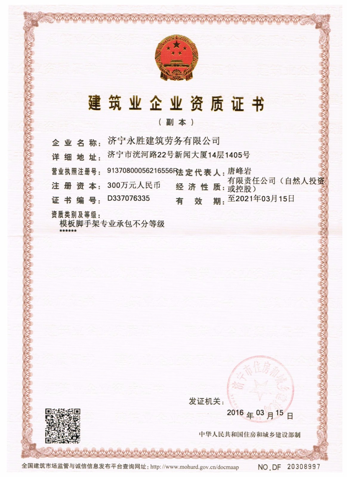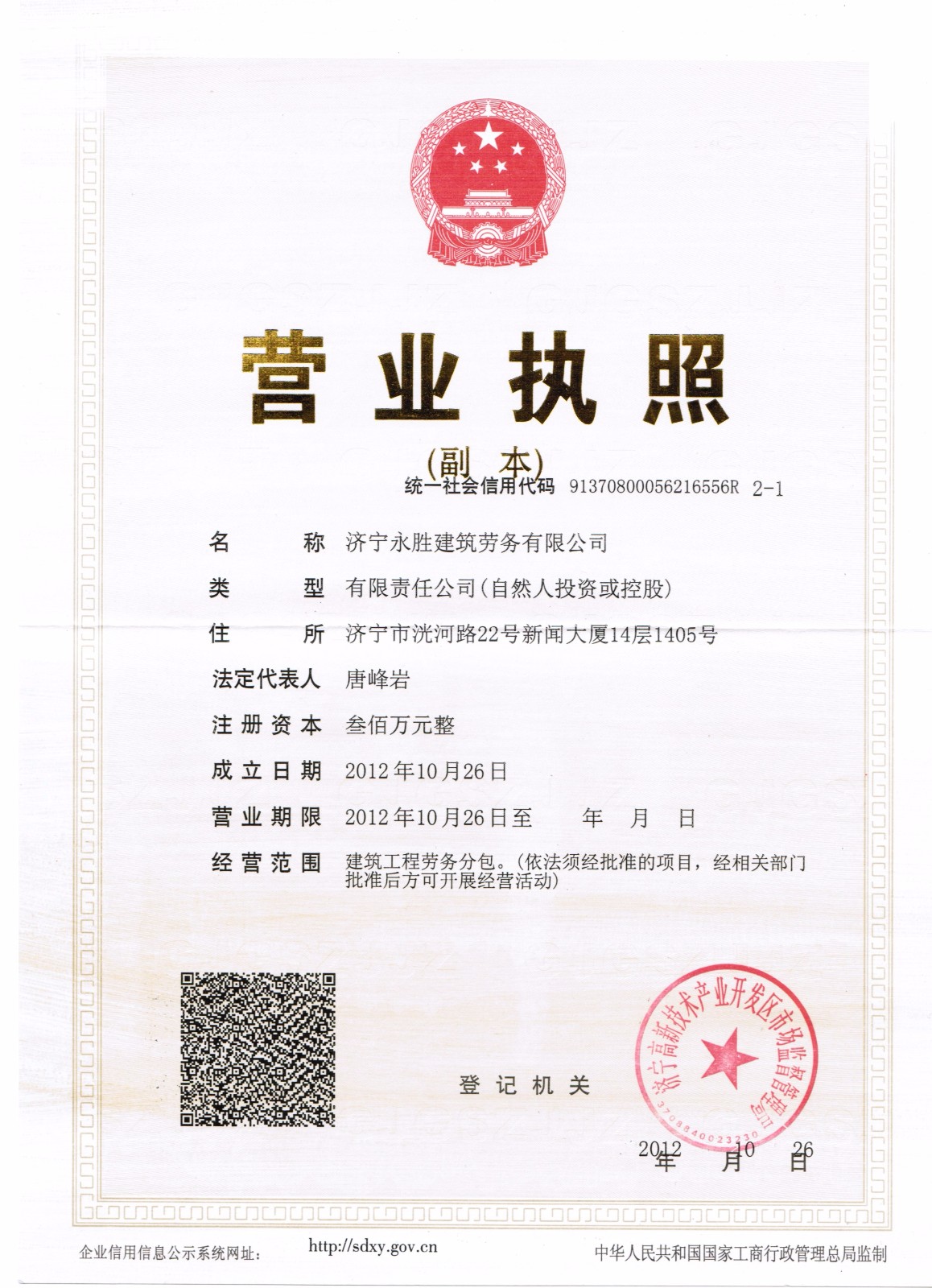 上一篇:济宁永胜建筑劳务有限公司简介